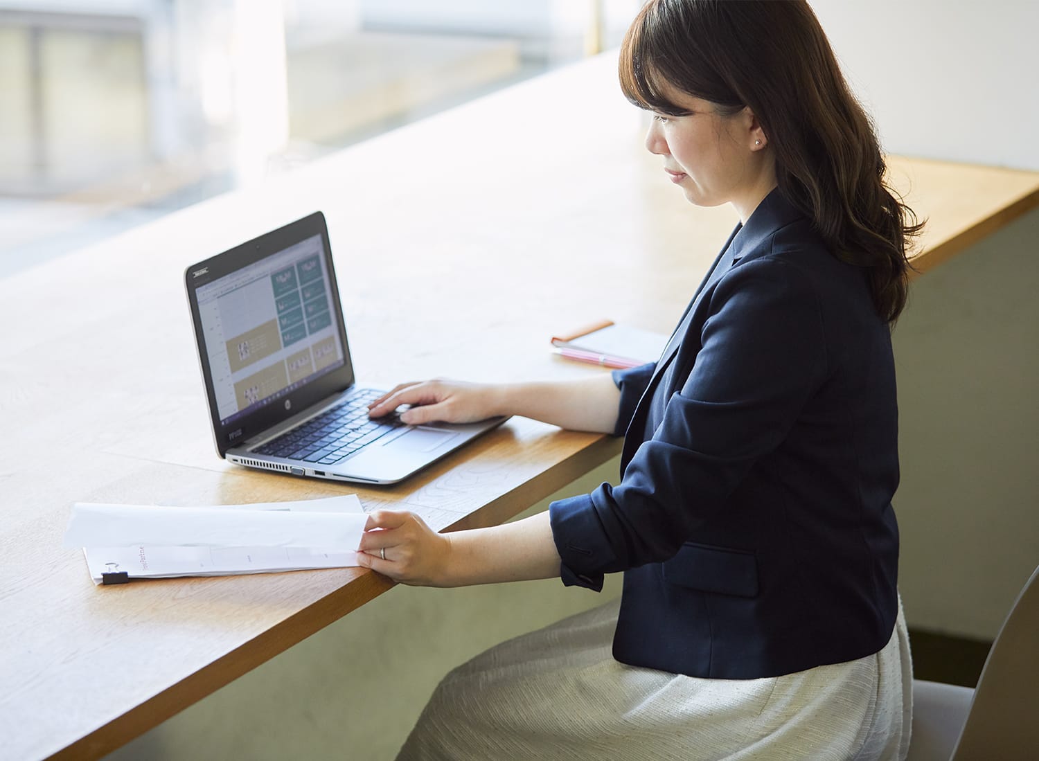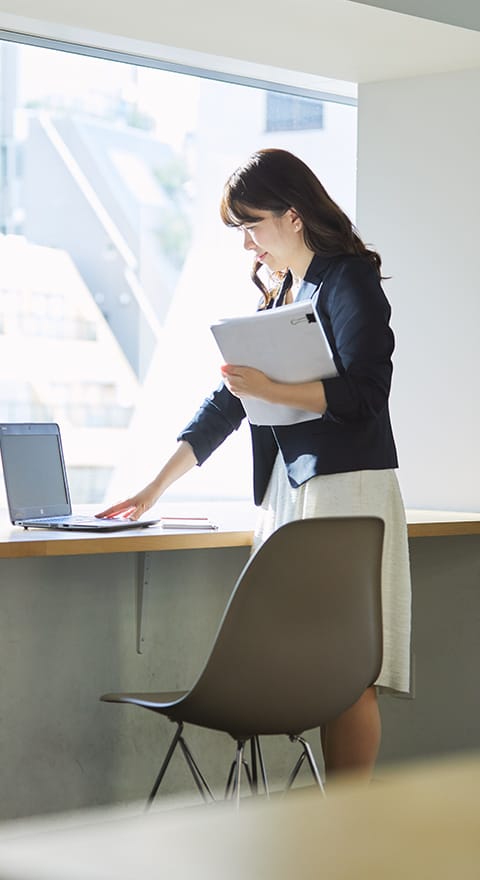 入社3ヶ月後に配属されたのは、管理本部総務部。どんな仕事をしているのかと聞かれたら、「なんでも屋さん」と答えますね(笑)。社員の入社から退職までのケアも担当しますし、請求書の発行や契約書の捺印など経理のことも少々やります。あとは、ロッカーなどの設備を変える際は、その商品選びや価格協議も行いますし、今の事務所が人でいっぱいになりつつあるので、サテライトオフィスを探すべく、不動産に問い合わせたり、中で使うものを揃えたりも。