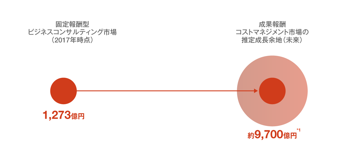 当社の推定では成果報酬型のコストマネジメント市場は約9,700億円(2017年) *1、コストマネジメント以外の成果報酬型コンサルティング市場も含めると2兆円以上*2となります。